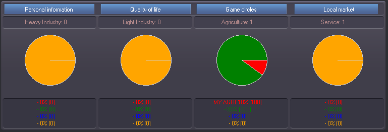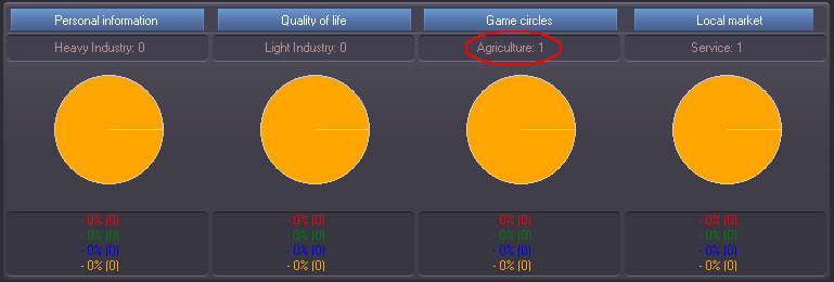 10- Alright, now we have our first 100 market units that are being sold in the city with each turn circle. To track our progress, it might be helpful to see what the “STATISTIC” display says—so click on the Agriculture button on the top of the screen. On the statistic screen we can see: