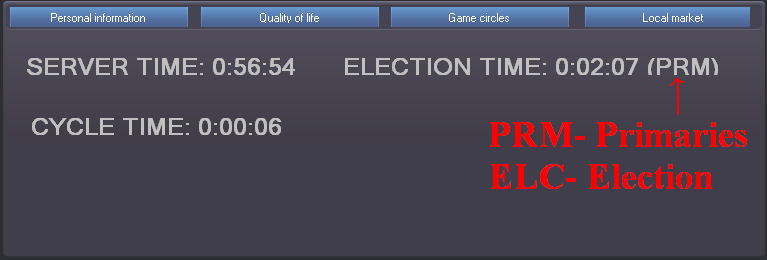 3- Political life in ROTT is divided into two in-game political circles: Primaries and Elections. Politicians can submit their candidacy for a Governor’s, Presidential, or Prime Ministerial seat only during the primaries. Those who miss the submitting their candidacy during the primaries will not be able to participate in political activities during the subsequent (or upcoming) Elections.